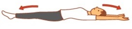 ①仰向けになり足先と手のひらを縦にのばす。