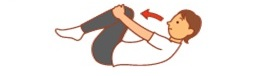 ②両手で膝を抱えへそに力を入れて胸元へ寄せる。
