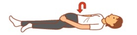 ③仰向けのまま上半身は出来るだけ上向き、太ももの付け根から片足を内側にねじる。