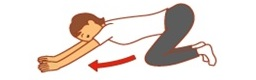 ④足先を立て四つん這いの状態からお尻をかかとのほうへ伸ばす。