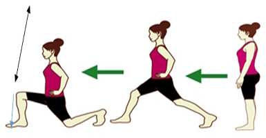 フロントランジ(おしりや太腿を鍛える) 目安として左右交互に10回