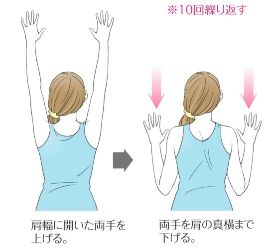 (肩が硬い方は手のひらを内側に)