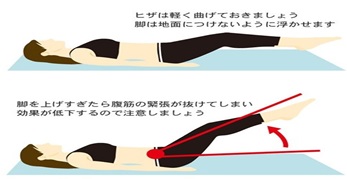 ※腰が反りやすくなるので腰を床から離さないようにする。