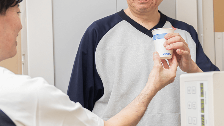 肺活量などを測定し、呼吸機能の評価をします。